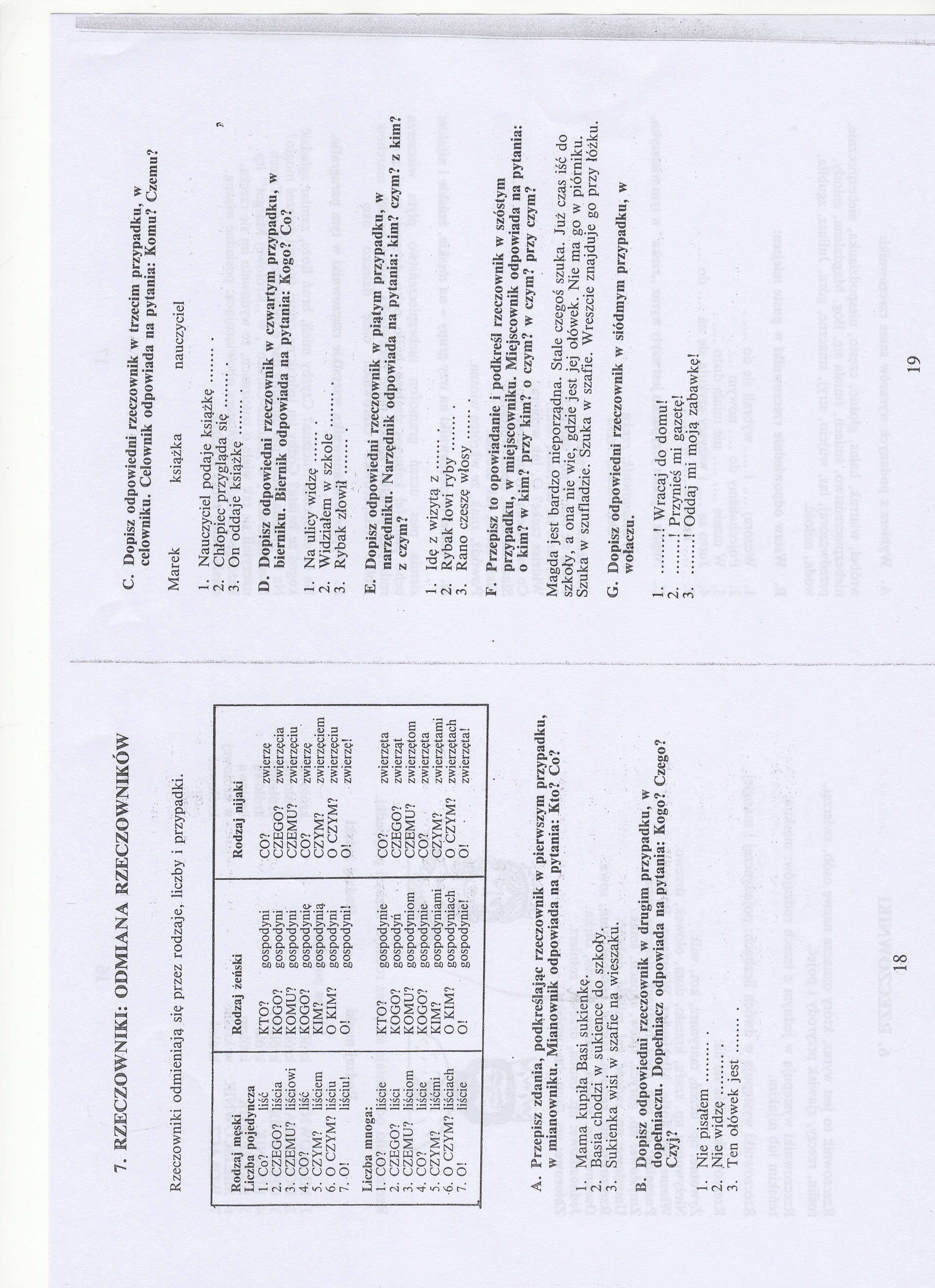 Tematem dzisiejszych zajęć były szkolne radości i smutki. Podręcznik str. 122-123, 127-130. Zadanie domowe to zadanie 11 ze strony 130 – oddajemy za tydzień na kartkach. Zeszyt ćwiczeń str. 61-62 (A new school). W załączniku powtórka z gramatyki – rzeczownik.